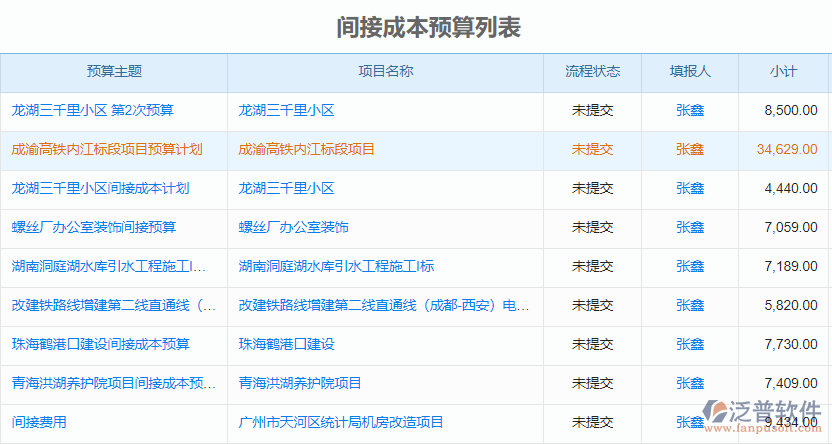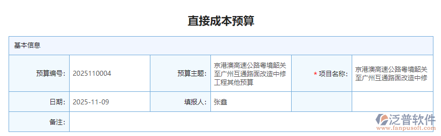 4、 泛普軟件安防工程管理系統(tǒng)中的預(yù)算管理是將直接成本預(yù)算和間接成本預(yù)算分開在管理,方便后期財(cái)務(wù)人員做成本統(tǒng)計(jì)。