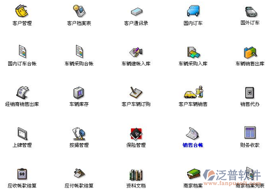 泛普軟件汽車客戶管理系統(tǒng)包括如下功能模塊: