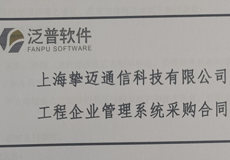 2019年4月25日,成都泛普軟件開(kāi)發(fā)有限公司與上海摯邁通信科技有限公司成功簽約,上海摯邁通信科技有限公司將借助泛普軟件的工程管理OA系統(tǒng)搭建信息化管理平臺(tái),實(shí)現(xiàn)全公司工程信息化的管控。
