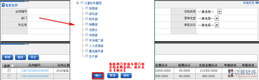 如何在泛普軟件ERP系統(tǒng)采購管理模塊查詢所有采購合同?