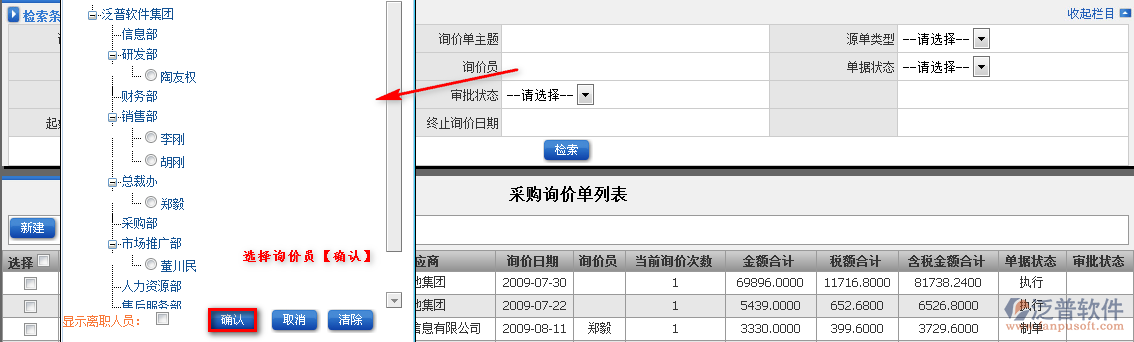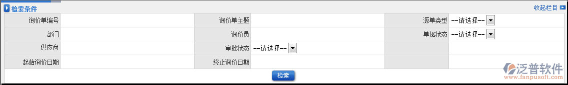 (1)詢價單編號,詢價單主題。選擇詢價員、部門查詢