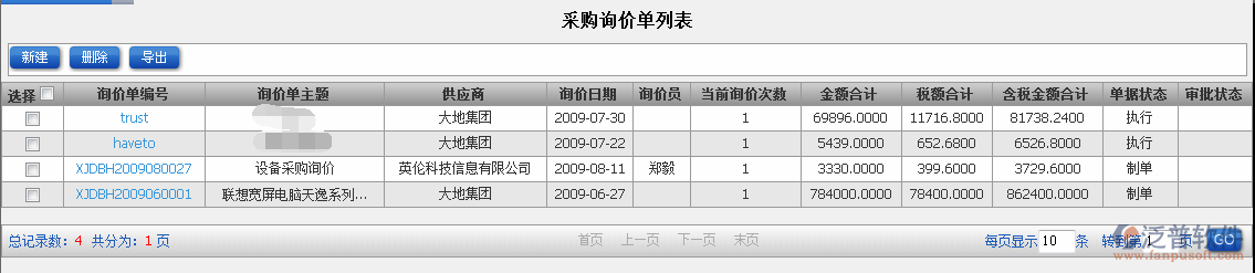 如何在泛普軟件ERP系統(tǒng)采購管理中查詢所有詢價單?