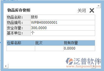 選中物品點擊【庫存快照】,查看當前庫存情況