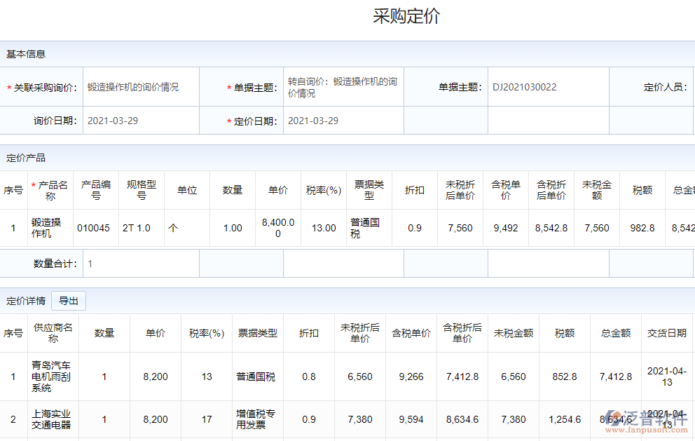 二、泛普軟件的ERP如何有效提高采購詢價的管理