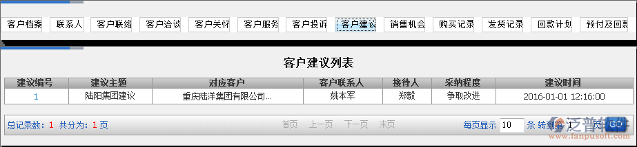 如何在泛普軟件ERP系統(tǒng)的CRM系統(tǒng)中查詢與客戶相關(guān)的所有信息?如與客戶的檔案信息、聯(lián)系人、客戶聯(lián)絡(luò)、客戶洽談、客戶關(guān)懷、客戶服務(wù)、客戶投訴、客戶建議、銷售機(jī)會(huì)、購買記錄、發(fā)貨記錄、回款計(jì)劃、預(yù)付及回款。