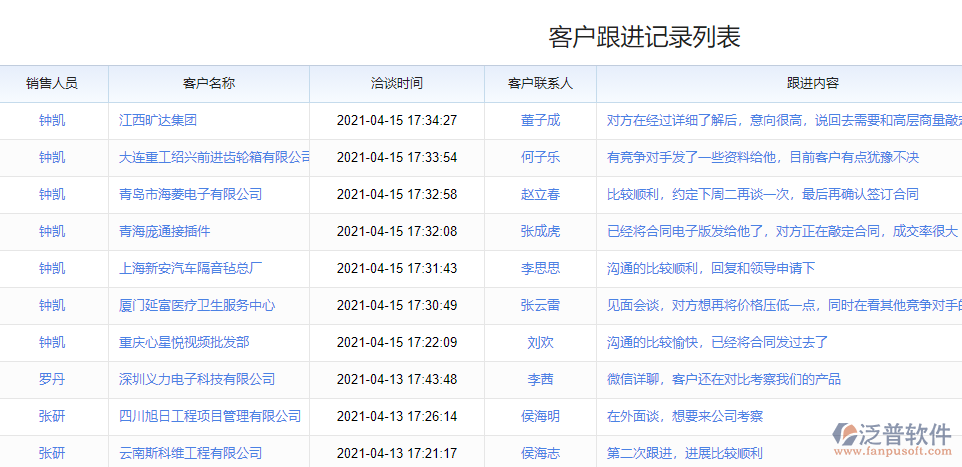 2、如果公司的銷售人員存在離職的情況,后面接手的銷售人員也可以詳細(xì)的知道關(guān)于上個銷售人員跟進(jìn)客戶的情況和進(jìn)度,防止新的銷售員接手不清楚客戶信息