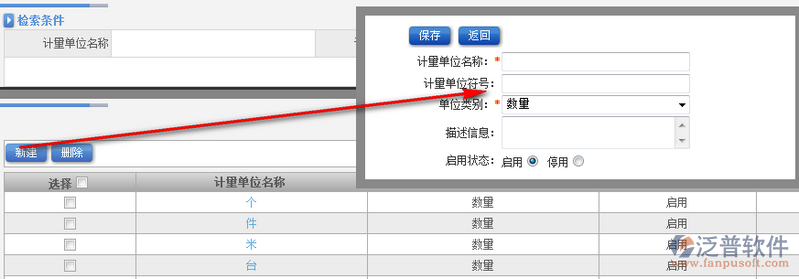3、點(diǎn)擊【新建】即可進(jìn)入計(jì)量單位新增頁(yè)面。如圖: