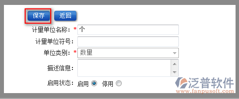 4、填寫完計(jì)量單位的相關(guān)信息,點(diǎn)擊【保存】即可完成新增操作。如圖:
