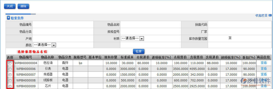 供應(yīng)商物品推薦列表