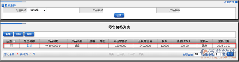 1、點(diǎn)擊【零售價(jià)格設(shè)置】進(jìn)入主界面,在此界面中可以查看到所有的檢索條件。如圖: