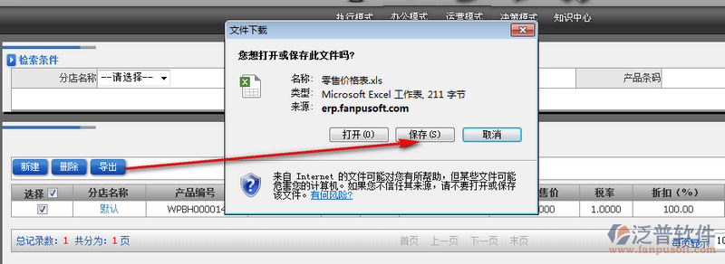 5、ERP系統(tǒng)為用戶系統(tǒng)導(dǎo)出功能,選中需要導(dǎo)出的零售價(jià)格。點(diǎn)擊【導(dǎo)出】即可。如圖: