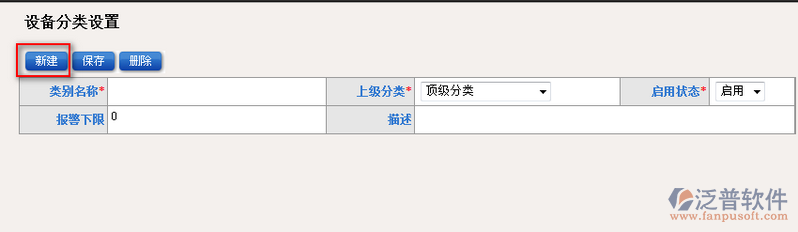 3、填寫完新增頁面中的相關(guān)信息,點擊【保存】即可完成設(shè)備分類的創(chuàng)建。如圖: