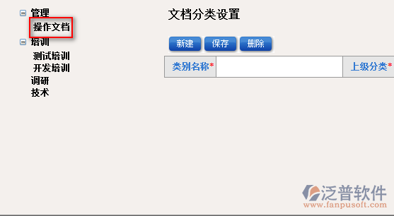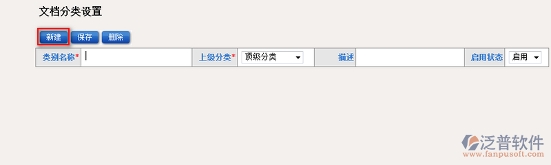 2、點(diǎn)擊【新建】即可進(jìn)入文檔分類(lèi)的新增頁(yè)面。如圖: