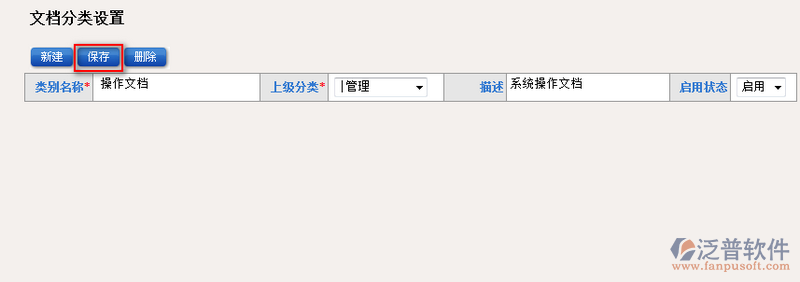 3、填寫(xiě)完相關(guān)信息文檔信息后,點(diǎn)擊【保存】便可實(shí)現(xiàn)文檔分類(lèi)的創(chuàng)建。如圖: