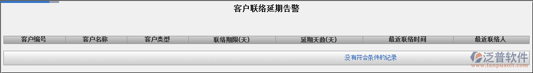 1.點擊辦公模式→客戶管理→客戶聯(lián)絡(luò)→客戶聯(lián)絡(luò)延期預(yù)警,進入“客戶聯(lián)絡(luò)延期預(yù)警”窗口: