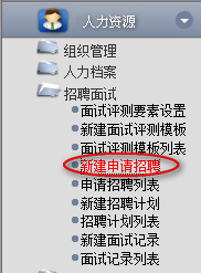 1.點(diǎn)擊辦公模式→行政管理→招聘面試→新建申請(qǐng)招聘,進(jìn)入“新建申請(qǐng)招聘”窗口: