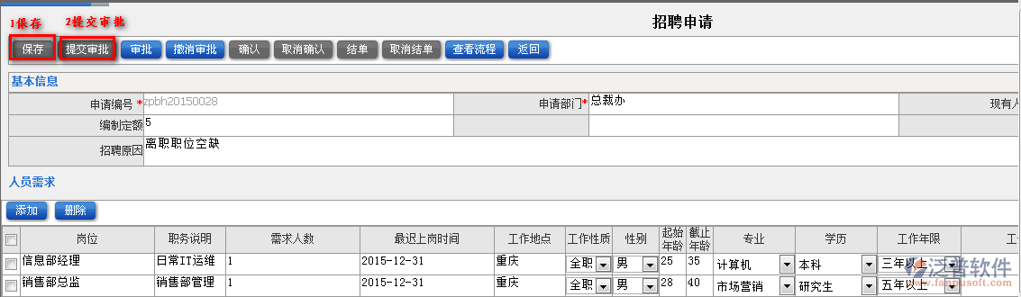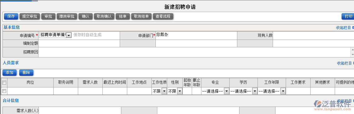 如何在泛普軟件ERP系統(tǒng)中新建用人申請(qǐng)?