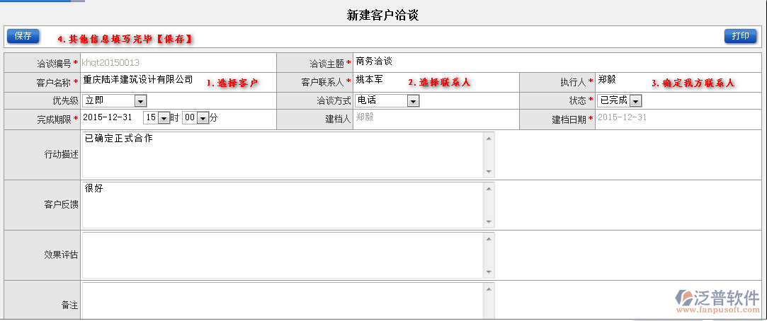 如何在泛普軟件ERP系統(tǒng)CRM模塊中新增洽談記錄?