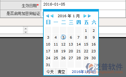 2.設(shè)置用戶名、密碼、重復(fù)密碼、綁定員工、生效日期、失效日期、是否鎖定、是否啟用加密狗驗(yàn)證。