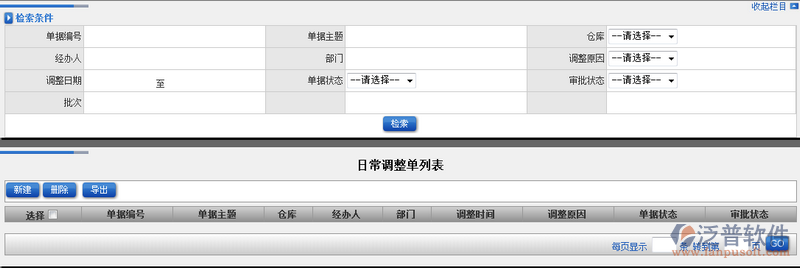1、點擊【日常調(diào)整單列表】進入主界面。如圖: