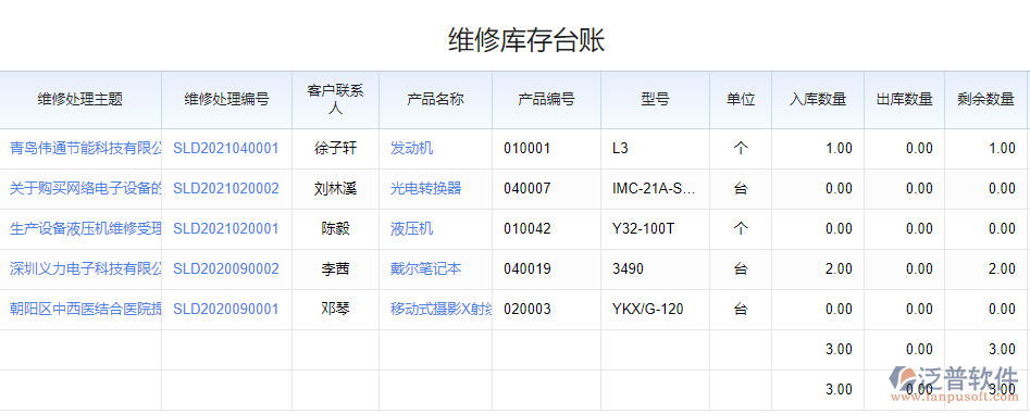 6、在對產(chǎn)品維修的過程中會詳細記錄產(chǎn)品的維修情況,并自動匯總維修庫存臺賬,對產(chǎn)品的數(shù)量可以通過臺賬來查看。