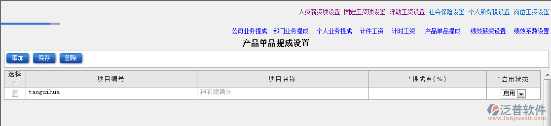 (5)產(chǎn)品單品提成設(shè)置
