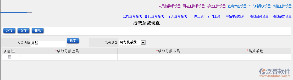 (6) 績(jī)效系數(shù)設(shè)置