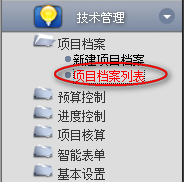 1.點(diǎn)擊辦公模式→技術(shù)管理→項(xiàng)目檔案→項(xiàng)目檔案列表,進(jìn)入“項(xiàng)目檔案列表”窗口: