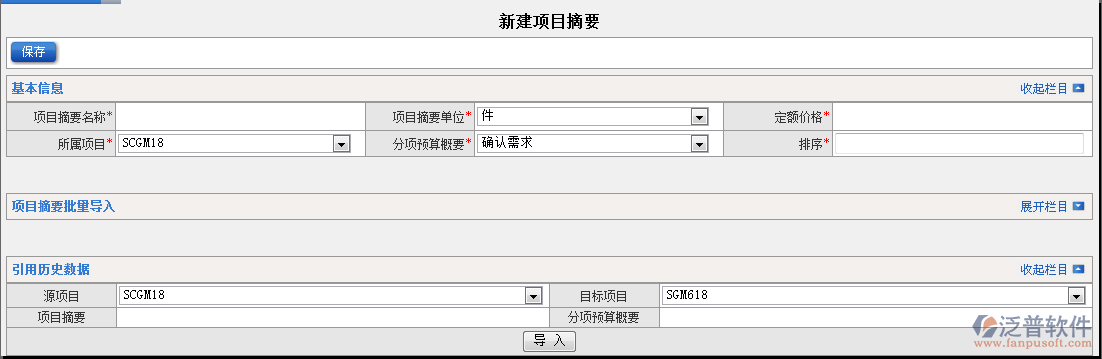 2.填寫項(xiàng)目摘要信息【保存】