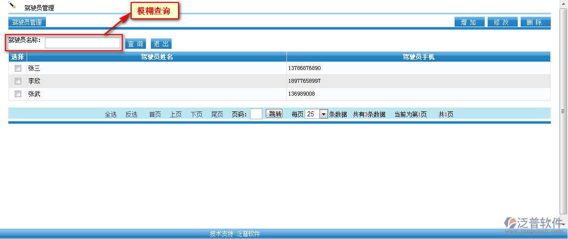 駕駛員管理可以通過(guò)【駕駛員名稱】進(jìn)行模糊查詢