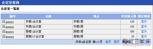 點(diǎn)擊[顯示]鏈接,可查看會(huì)議室詳細(xì)信息,及該會(huì)議室的預(yù)定情況。