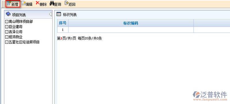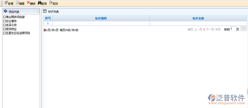 1、登錄項目管理系統(tǒng),點擊功能菜單,基礎(chǔ)設(shè)置->機械進場標識設(shè)置,系統(tǒng)轉(zhuǎn)入機械進場標識設(shè)置表,系統(tǒng)瀏覽窗口如下:
