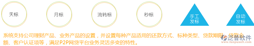 系統(tǒng)提供天標(biāo)、月標(biāo)、流轉(zhuǎn)標(biāo)、秒標(biāo)等多種標(biāo)的,并支持手工發(fā)標(biāo)和自動(dòng)發(fā)標(biāo)。