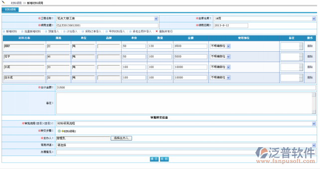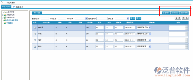 管理工程中使用到的材料,包括甲供材料、供應(yīng)商報價、材料預(yù)算,采購、領(lǐng)用、材料用量查詢、預(yù)算對比等。