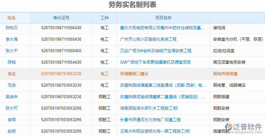三、泛普軟件路橋工程管理系統(tǒng)中的勞務(wù)管理方案