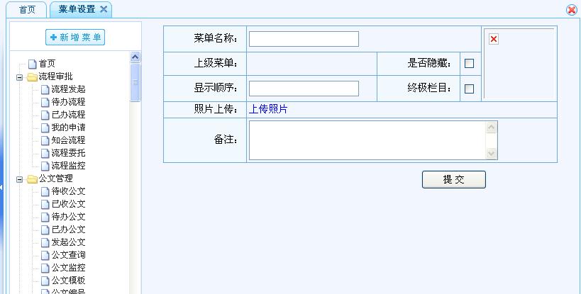 當(dāng)前位置:工程項目OA系統(tǒng) > OA系統(tǒng)平臺版 > 操作說明 > 菜單設(shè)置