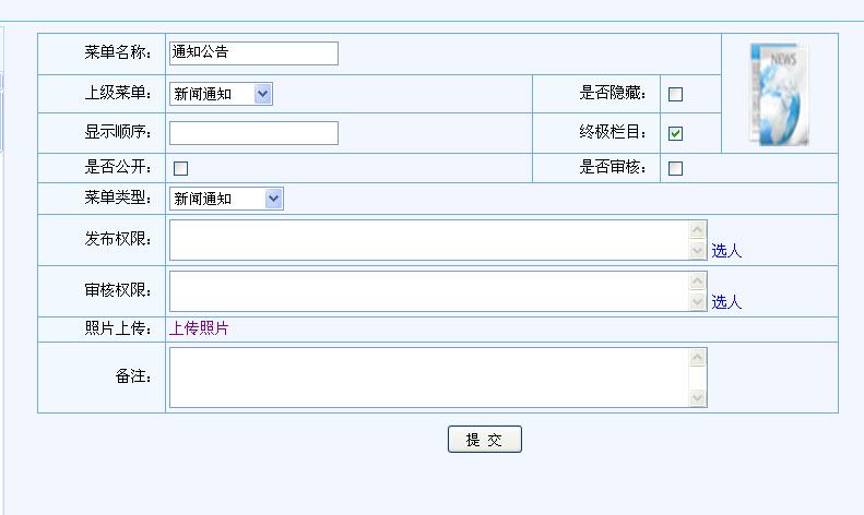 增加新聞類信息管理菜單或子菜單。