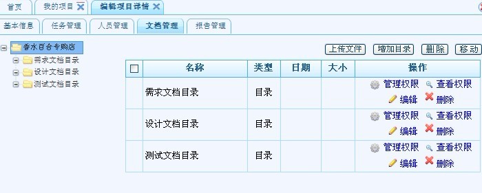 顯示所有的文檔目錄信息以及所有附件??梢赃M(jìn)行上傳文件,增加目錄,刪除或移動(dòng)附件。