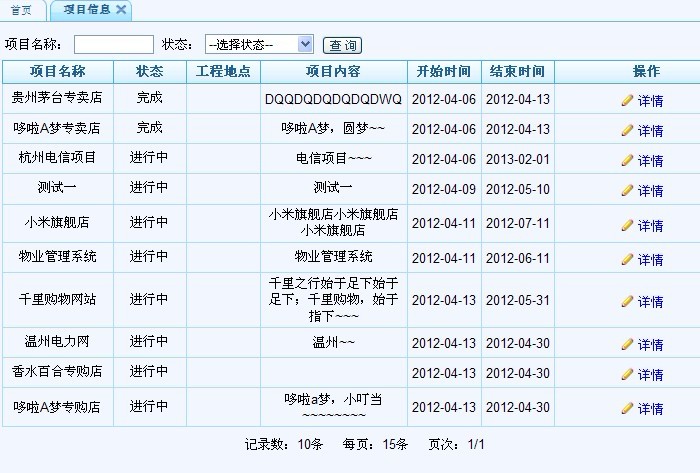 點擊項目“詳情”,即可查看項目的基本信息。