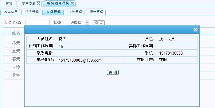 顯示所有項目人員信息。