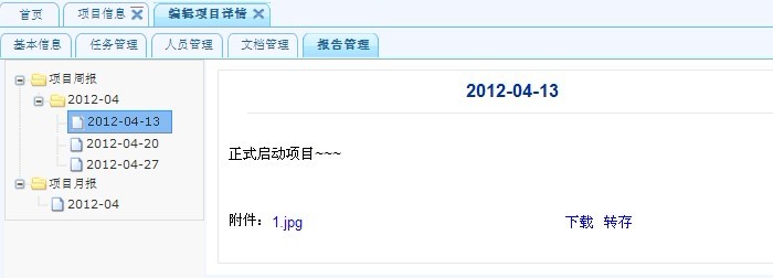 項目信息,包括項目基本信息,以及任務(wù)管理、項目人員管理、文檔管理、報告管理等進行查看。