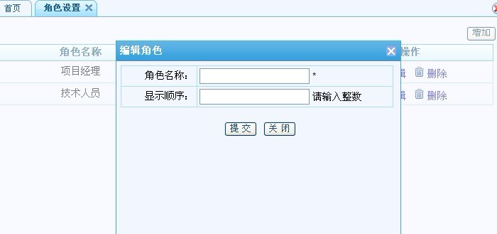 新增、編輯或者刪除角色,主要實現(xiàn)協(xié)同項目人員角色管理。