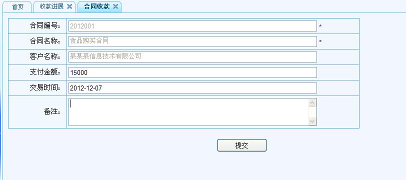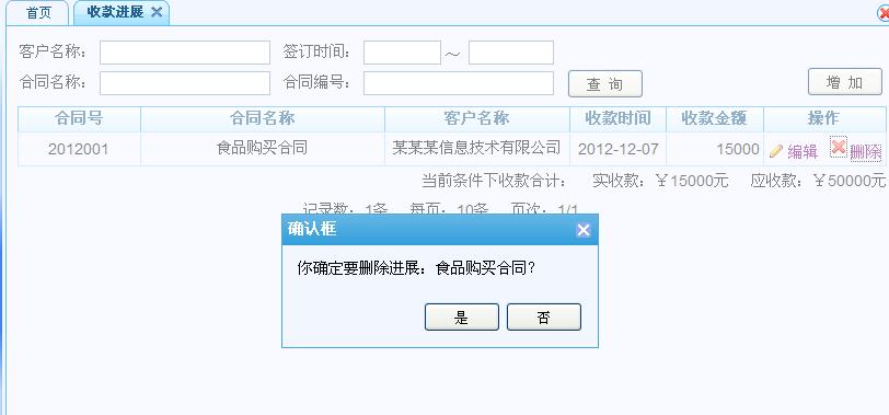 顯示所有的收款進展記錄(應收款是指簽訂合同中的合同金額,實收款是指客戶已支付金額)。