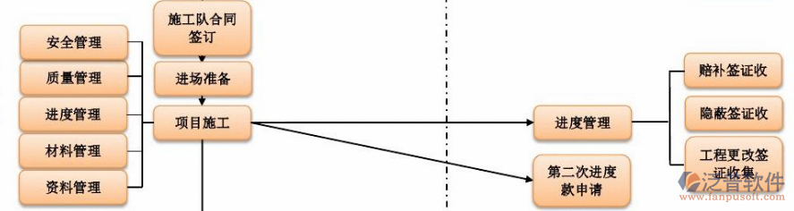 系統(tǒng)以項目的開展為主軸,同時圍繞施工成本、工程進(jìn)度、合同管理三個中心;系統(tǒng)按公司->項目的組織架構(gòu)進(jìn)行設(shè)計,通過用戶權(quán)限、職務(wù)權(quán)限、項目權(quán)限、操作權(quán)限進(jìn)行分工協(xié)作;同時通過工作流程對企業(yè)的業(yè)務(wù)進(jìn)行審批工作。其中針對的具體作用如下所示: