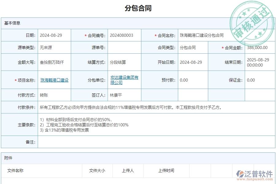 4、 簡化分包流程:泛普軟件能幫助企業(yè)簡化分包流程,減少重復性工作,提高管理效率。