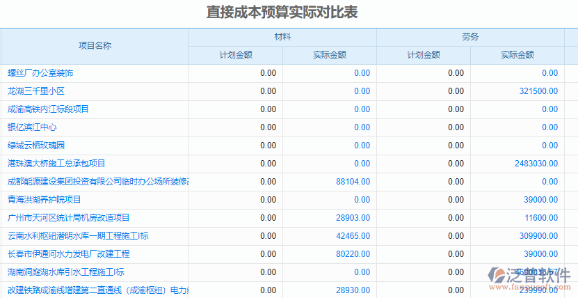 2、 直接成本預(yù)算實(shí)際對(duì)比表