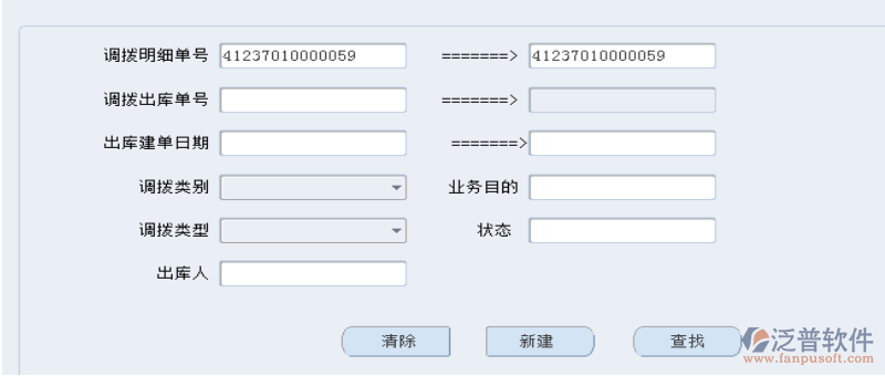 2、輸入調(diào)撥明細(xì)單號(hào)等查詢條件,點(diǎn)擊“查找”功能