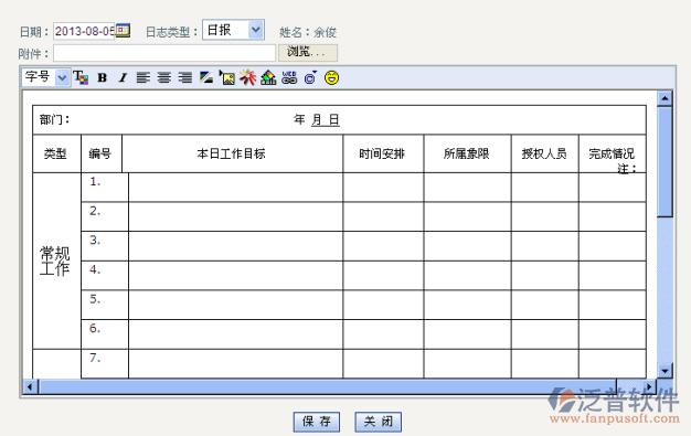 輸入日期,日期類型和附件等相關(guān)信息,單擊【保存】,一個(gè)新的日志新增完成。