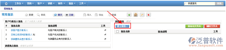 用戶登錄系統(tǒng)后,點(diǎn)擊“報(bào)表à常用報(bào)表”,進(jìn)入常用報(bào)表頁(yè)面后,可以首先新增一個(gè)文件夾,如圖所示: