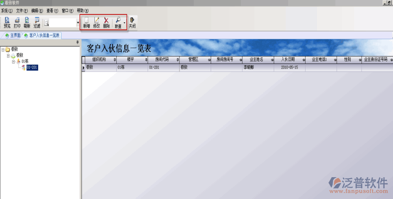 客戶入伙驗(yàn)收信息一覽表里面可以查看、新增、修改、刪除客戶入伙驗(yàn)收信息。